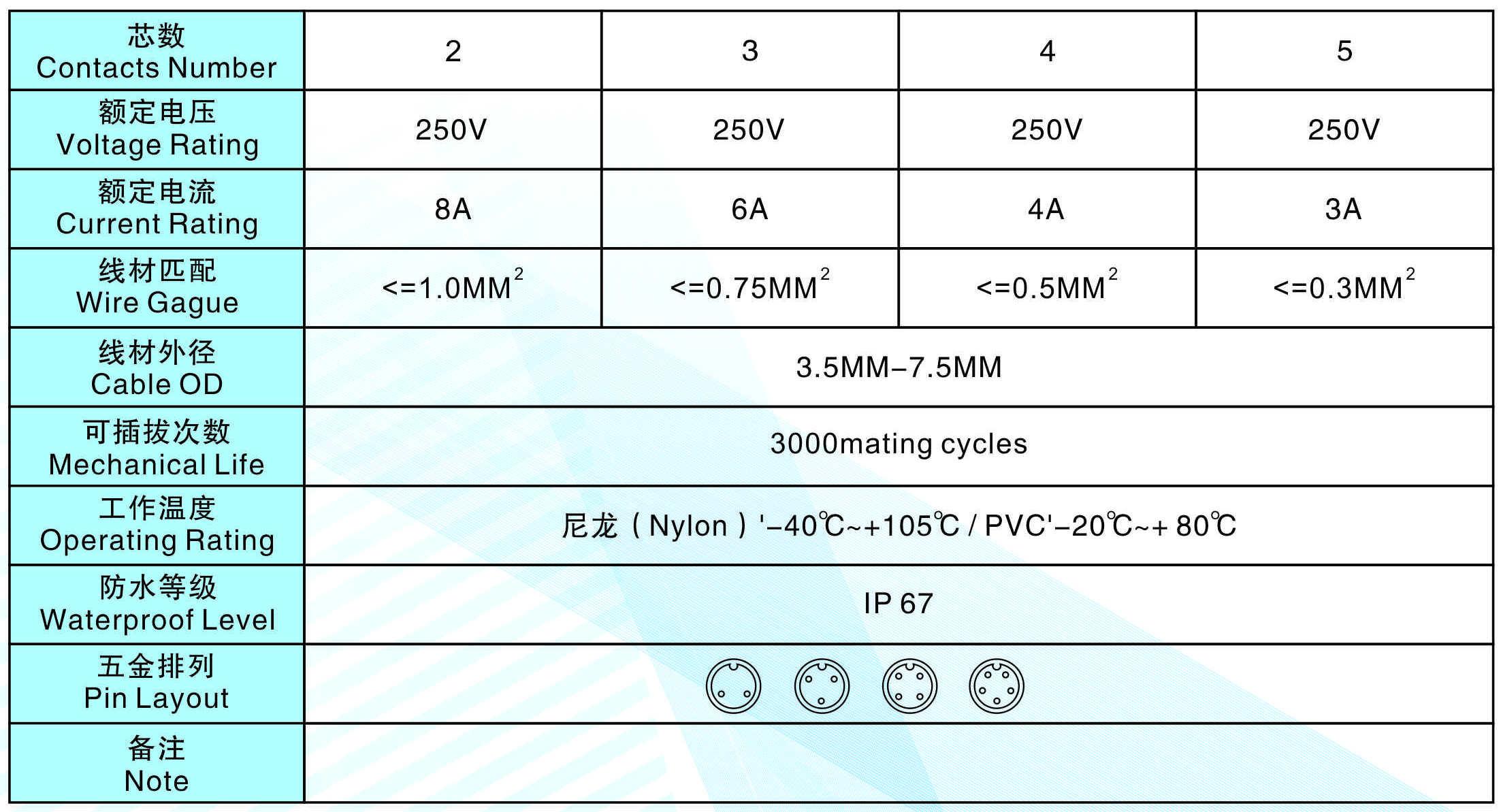 線(xiàn)材匹配(Wire Gague):<=1.0MM2 <=0.75MM2 <=0.5MM2 <=0.3MM2